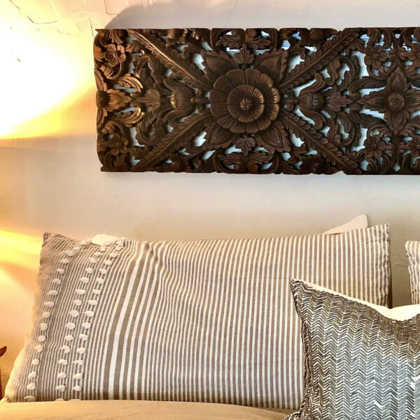Our carved wooden headboards transform bedrooms into serene retreats, creating a focal point that radiates elegance and authenticity.