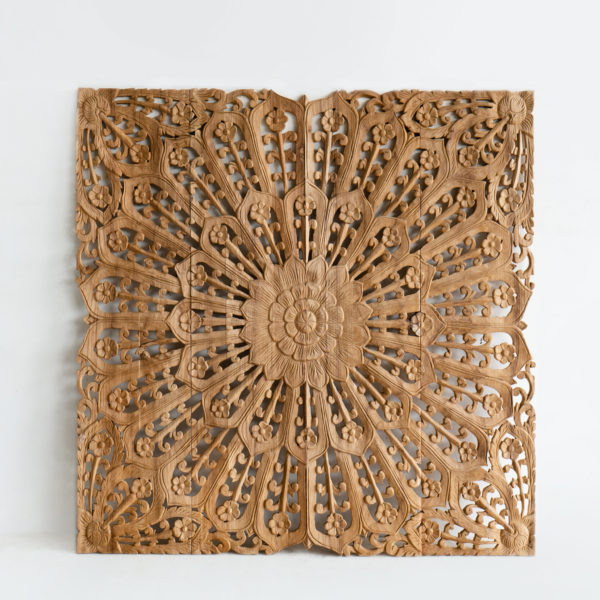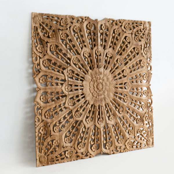 Our 48-inch carvings are perfect for twin beds or displayed as wall art. Handcrafted from reclaimed teak wood in Chiang Mai, Thailand, each piece blends traditional artistry with flexible design for smaller spaces.