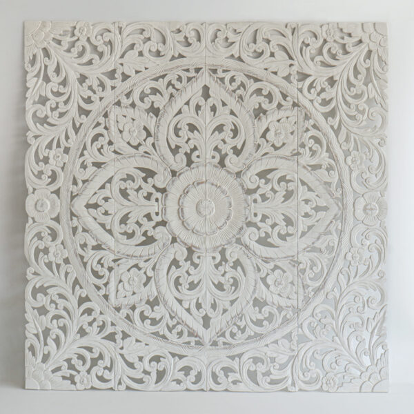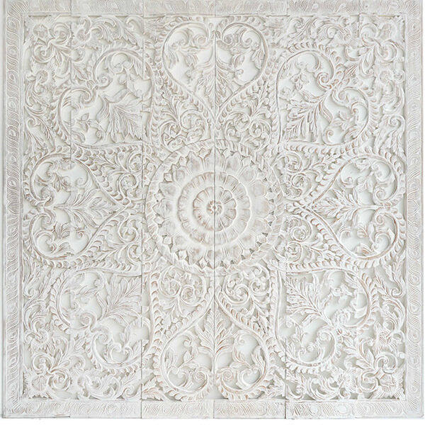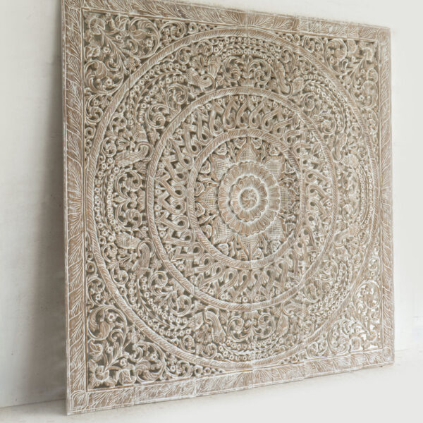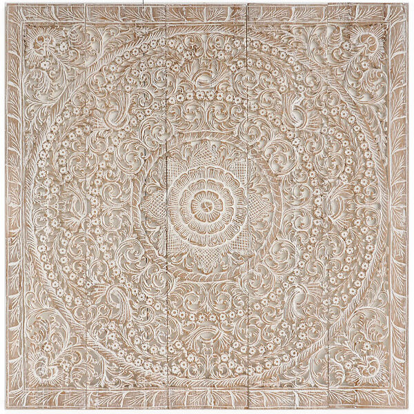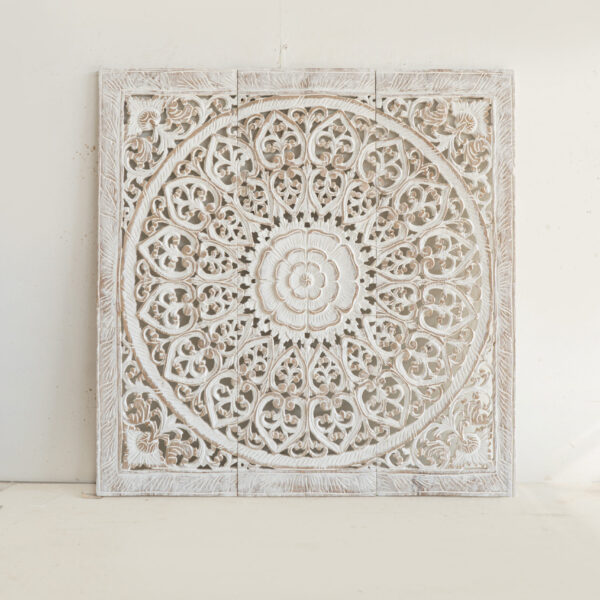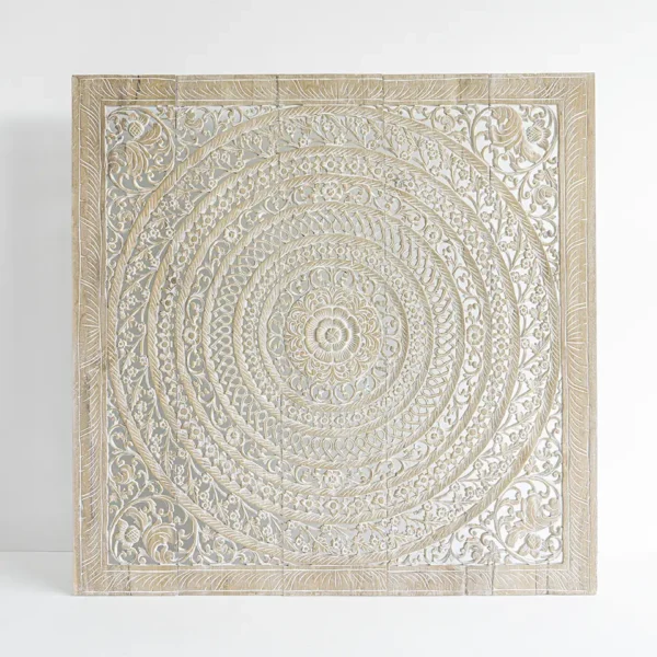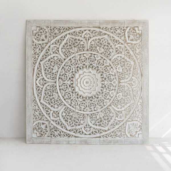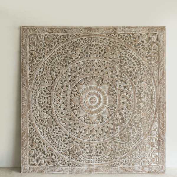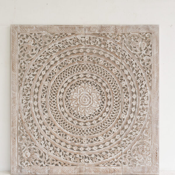 Mandala Heart Whitewash Carved Panels