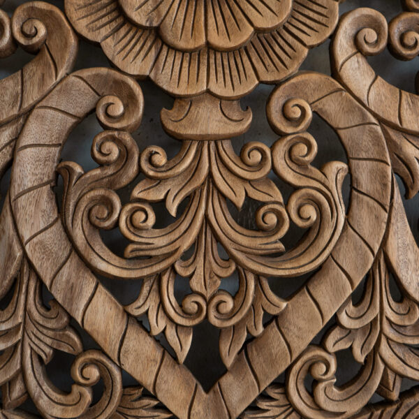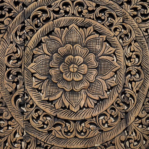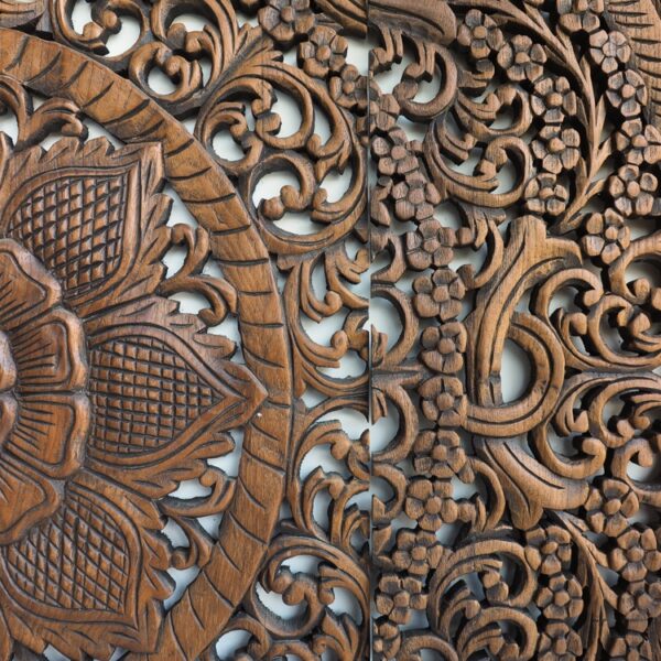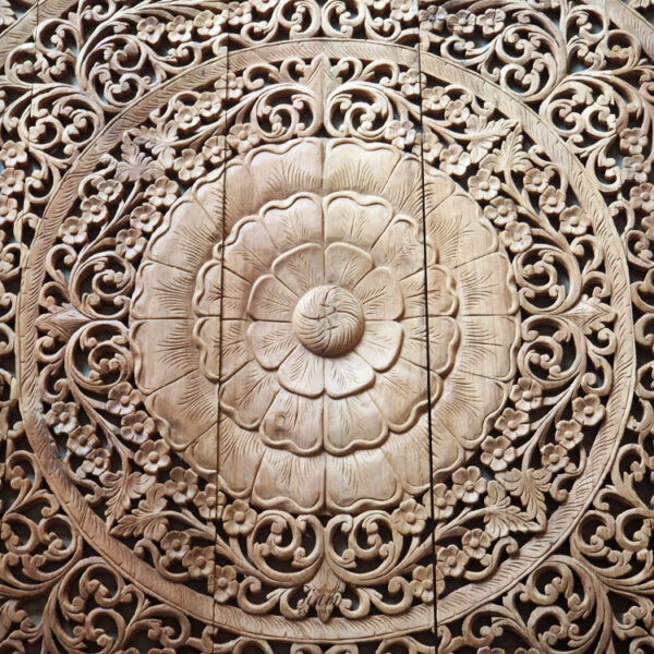 Circular Floral Wood Carved Wall Art Panel