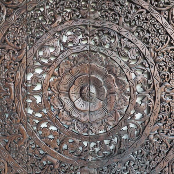 Mandala Carved Wood Headboard King