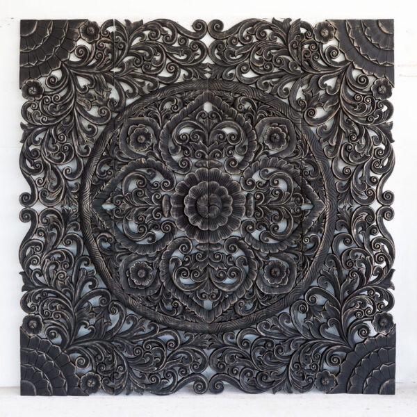 Carved Lotus Wall Art Panel Bed Headboard