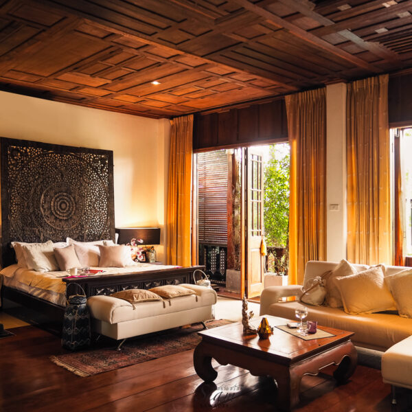 King Carved Wall Headboard Boho Bedroom
