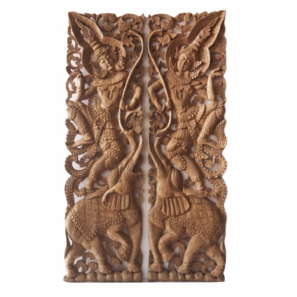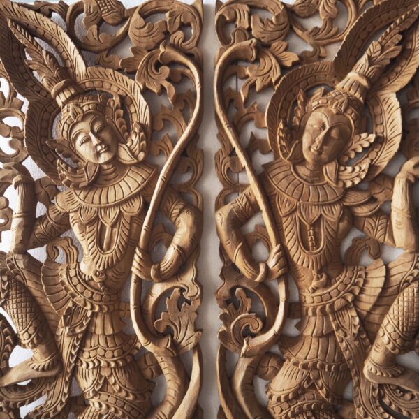 Buddhist Angels Wood Carved Pair