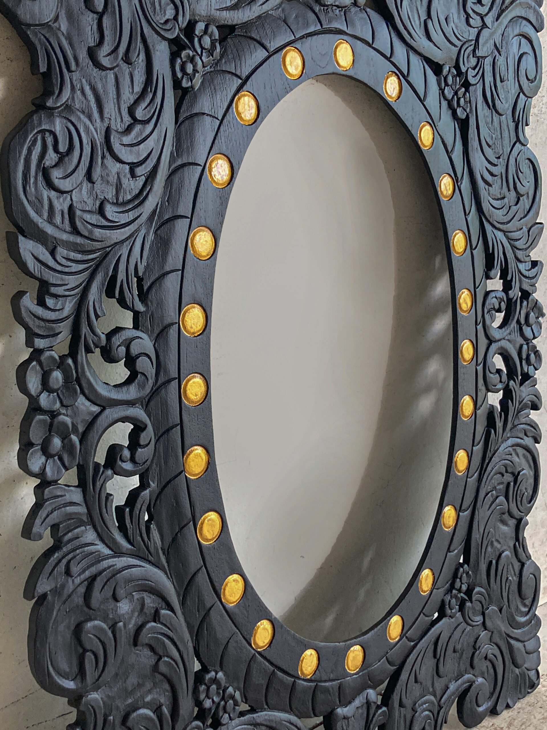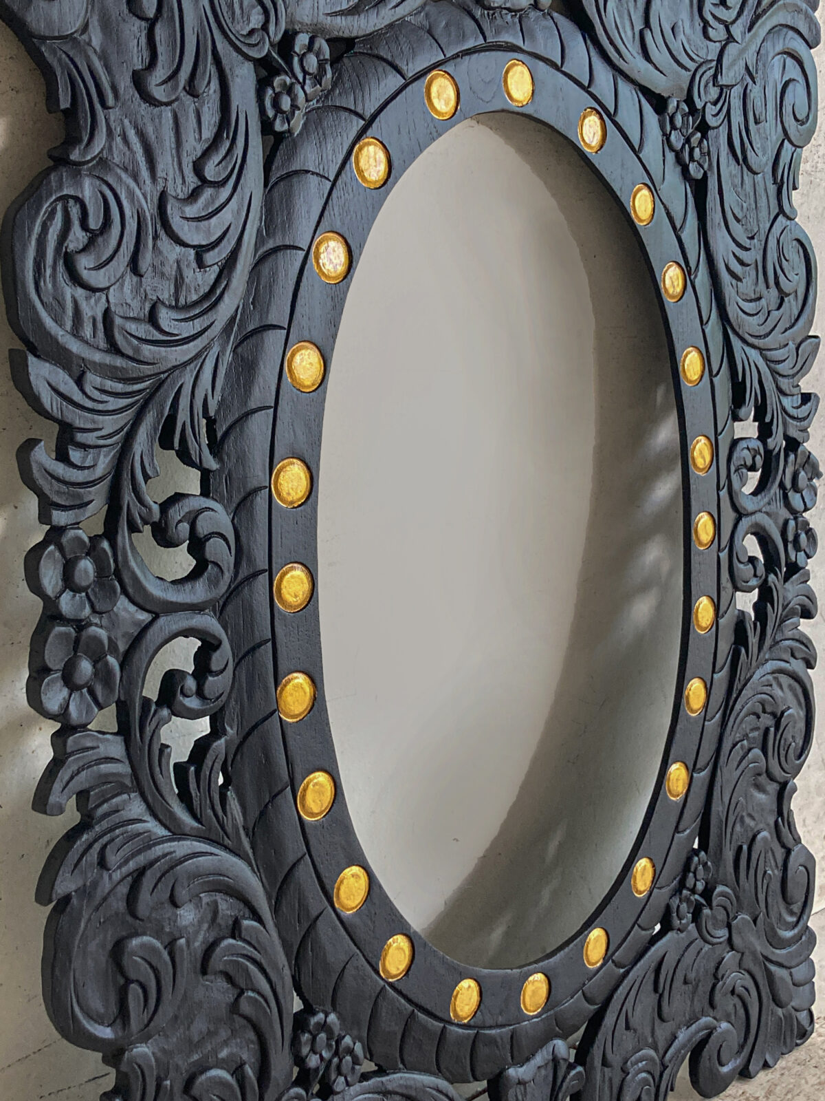 • Reclaimed Teak wood • Consists of 1 panel, mirror & backboard not included • Hand-carved — expect natural variations in pattern, color tone, wood grain, and up to ±1″ in width/height. Thickness may vary slightly due to carving. • Easy installation — metal hangers, screws, wall plugs, and instructions included • Optional wooden French cleat system available (additional cost) • Indoor use recommended; outdoor use possible only under covered areas (avoid direct sun/rain). Apply a clear outdoor wood sealant if placing outside. • Wipe with a dry cloth |