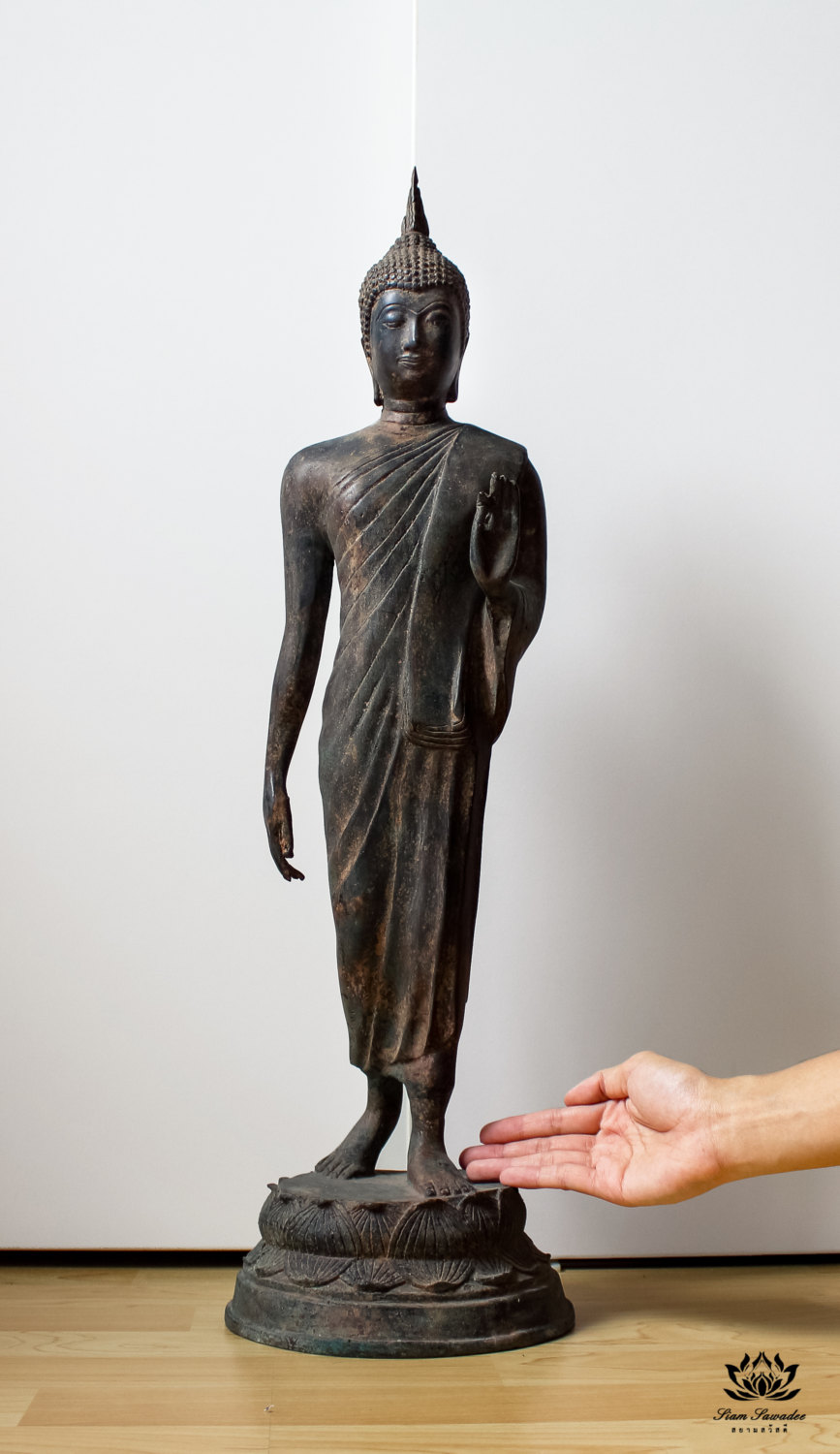Large Walking Buddha Statue. Bronze Buddha perfect for home or garden meditation. Signifies reassurance and blessings.