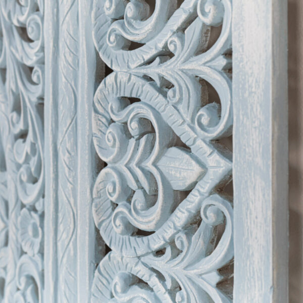 Bed headboard wooden wall panel made by hill tribe artisans of northern Thailand. Bring a sense of uniqueness with this beach cottage home decor to your creative and contemporary room.