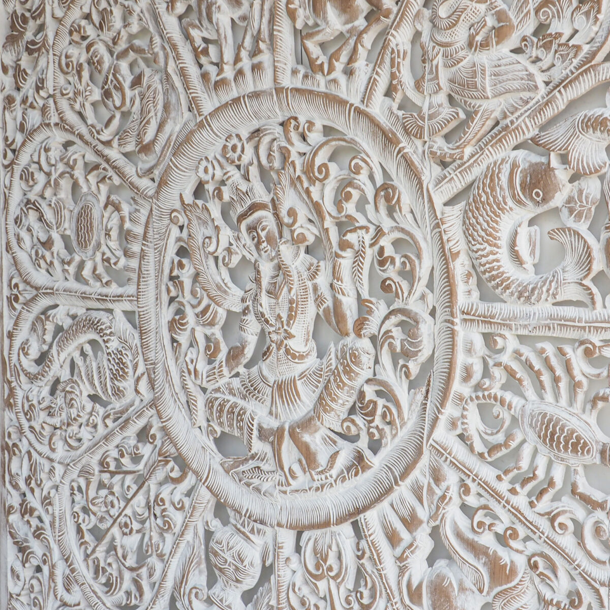 Extra thick of a king size bed headboard or decorative carved wooden wall art panel with frame. Bring a sense of uniqueness with oriental design, adding luxurious and beautiful decorative patterns and character to a creative and contemporary room.