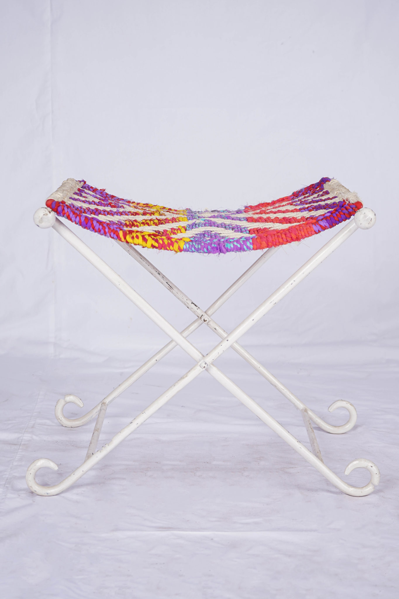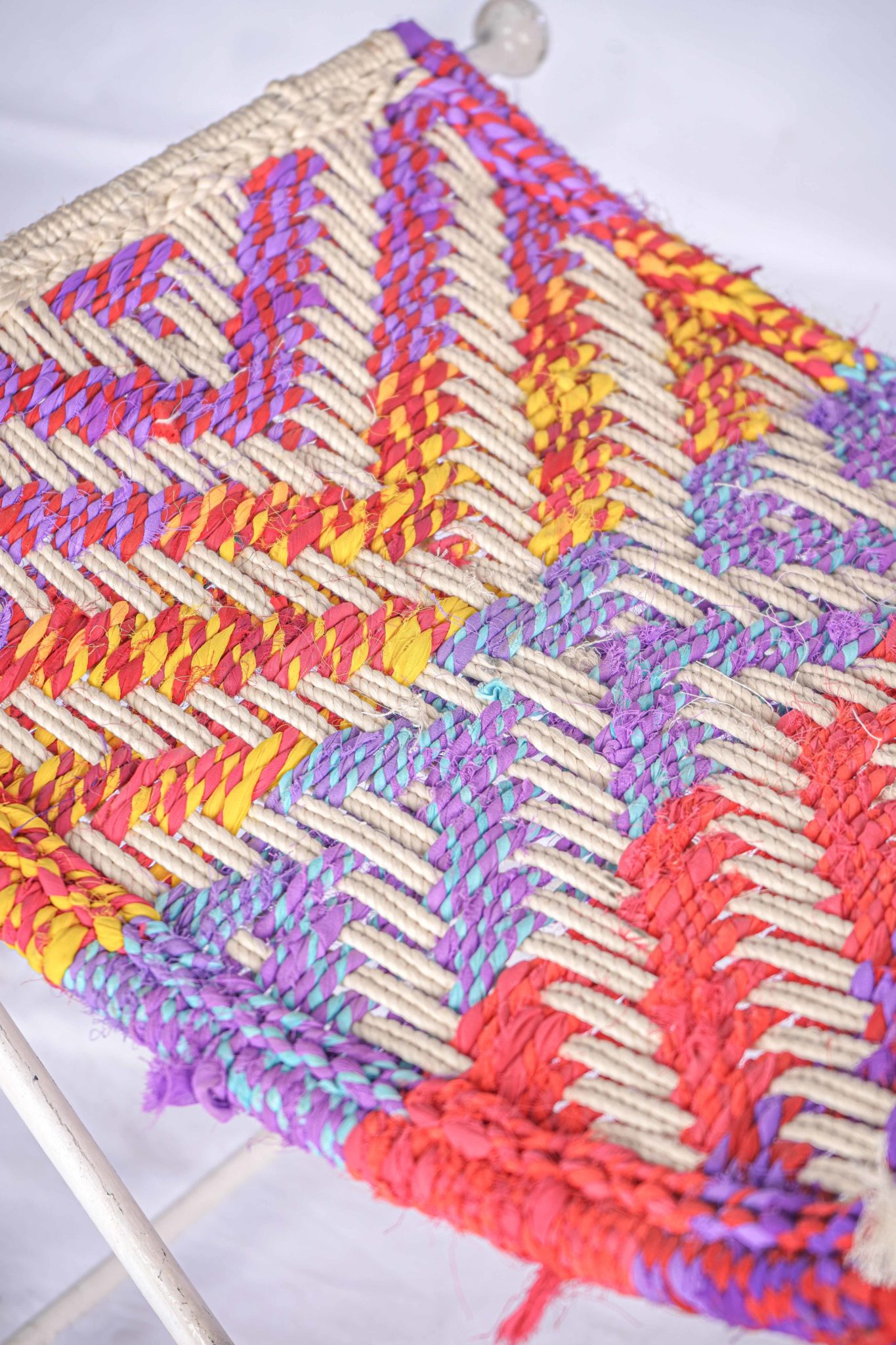 Stunning weaving work on this chair with this bright colourful cotton. With its structure of metal hand painted in white, it will be a great addition to any of your room at home.