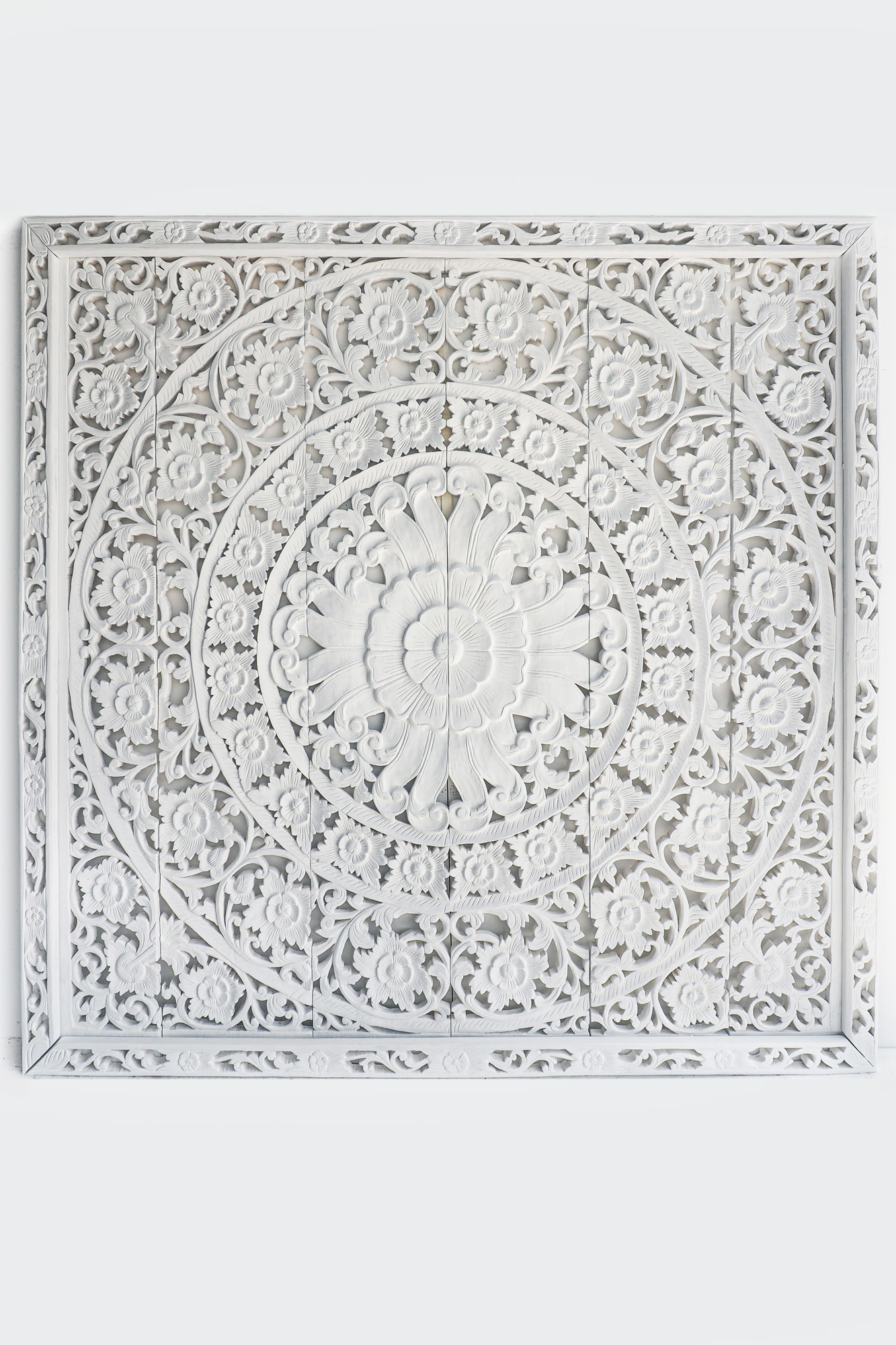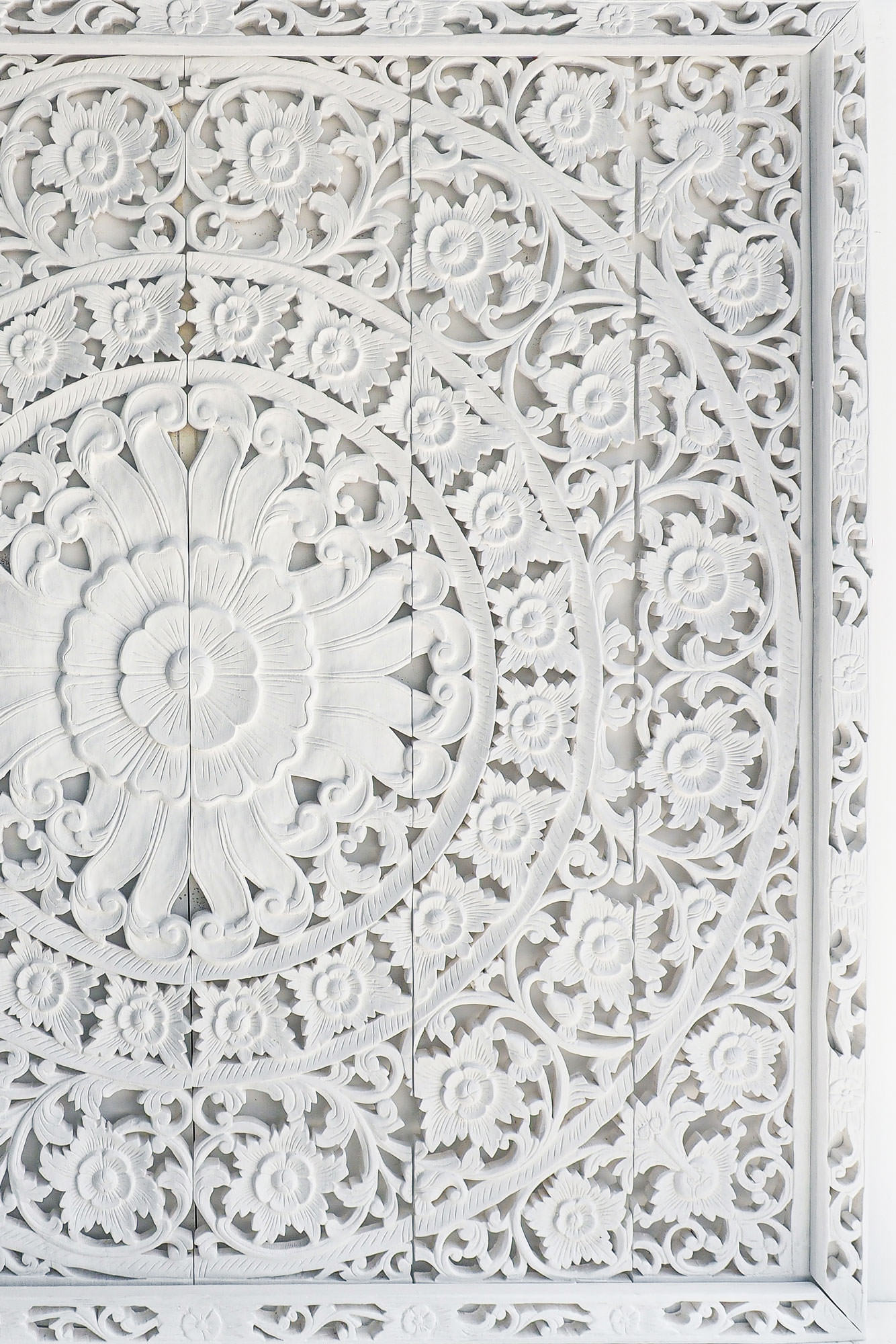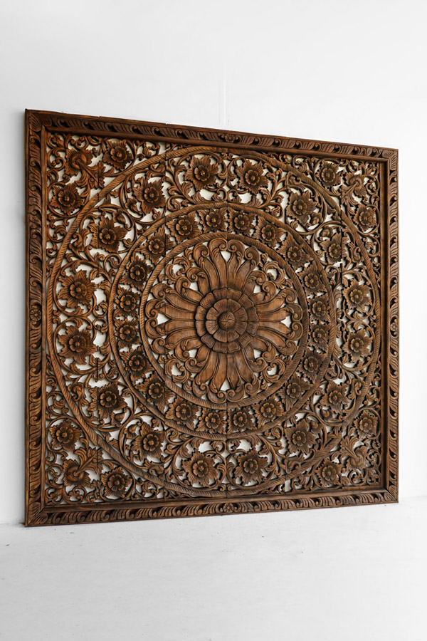 • Hand-carved — expect natural variations in pattern, color tone, wood grain, panel alignment, and up to ±1″ in width/height. Thickness may vary slightly due to carving.