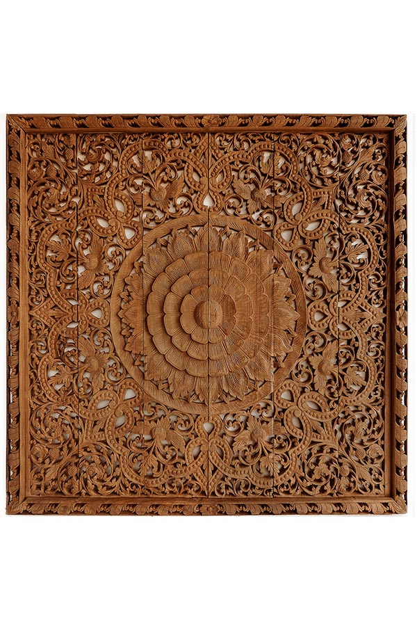 • Hand-carved — expect natural variations in pattern, color tone, wood grain, panel alignment, and up to ±1″ in width/height. Thickness may vary slightly due to carving.