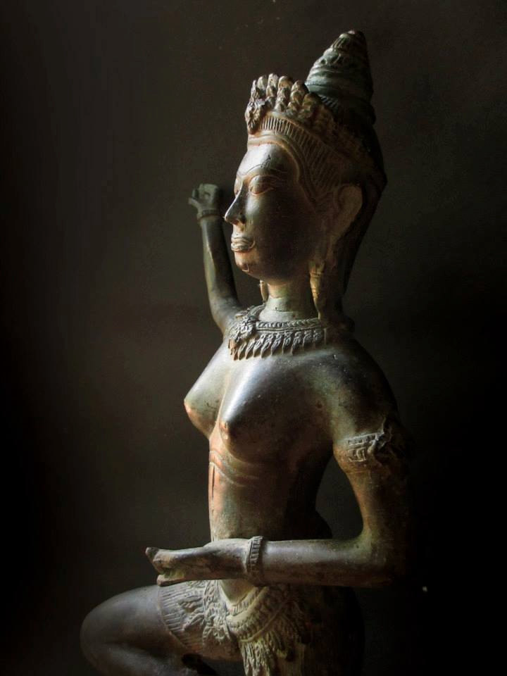 Large unique bronze statue of a dancing angel known as ‘Apsara’. Similar to sculptures found in the mystical ruins of Angkor Wat and the Khmer Kingdom. Perfect for a large home, restaurant or hotel.