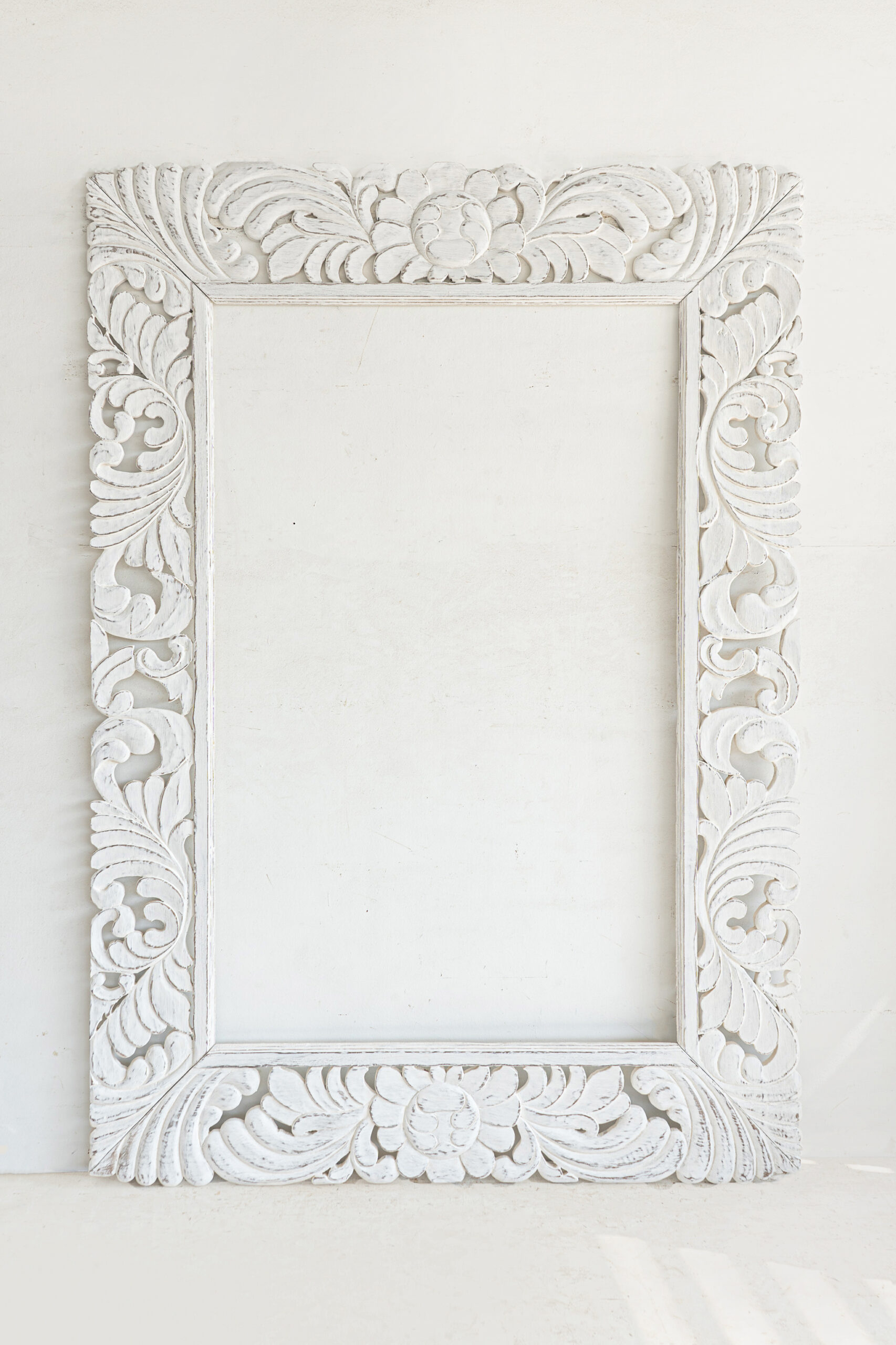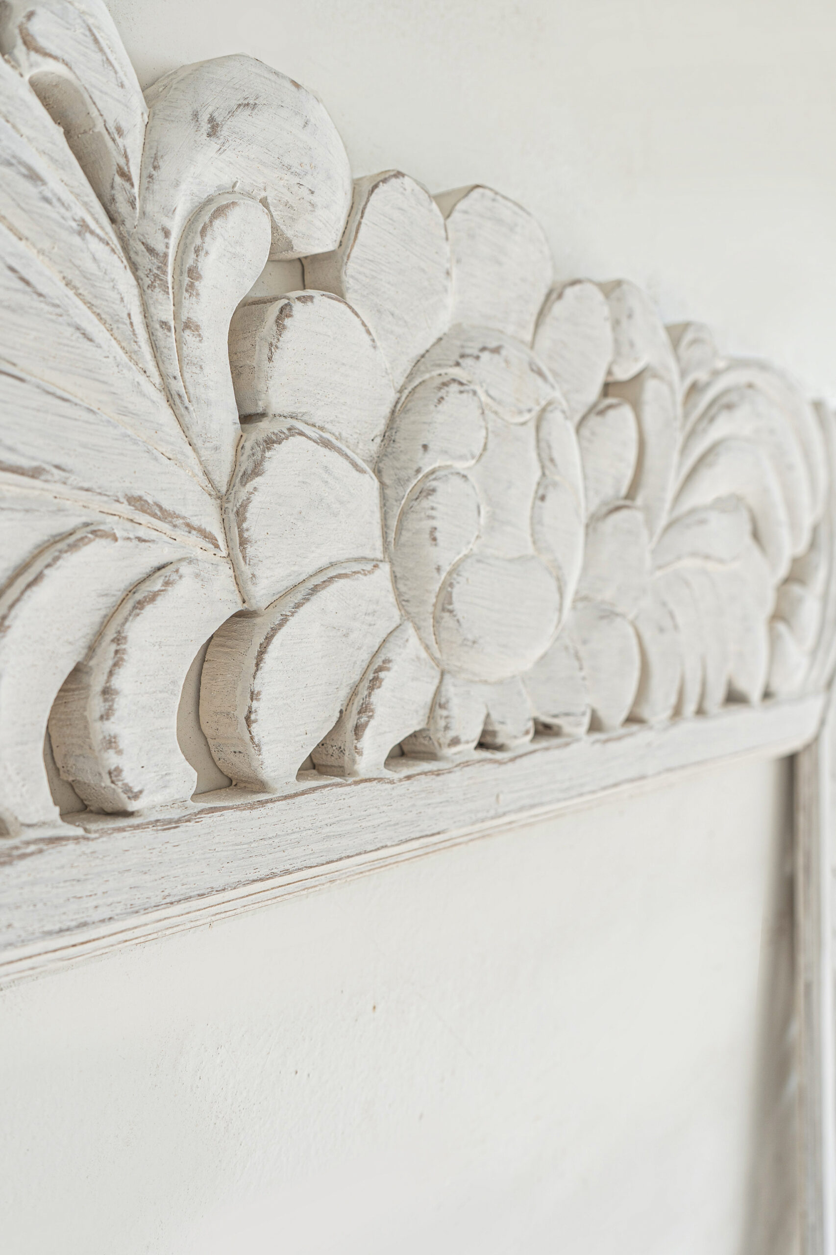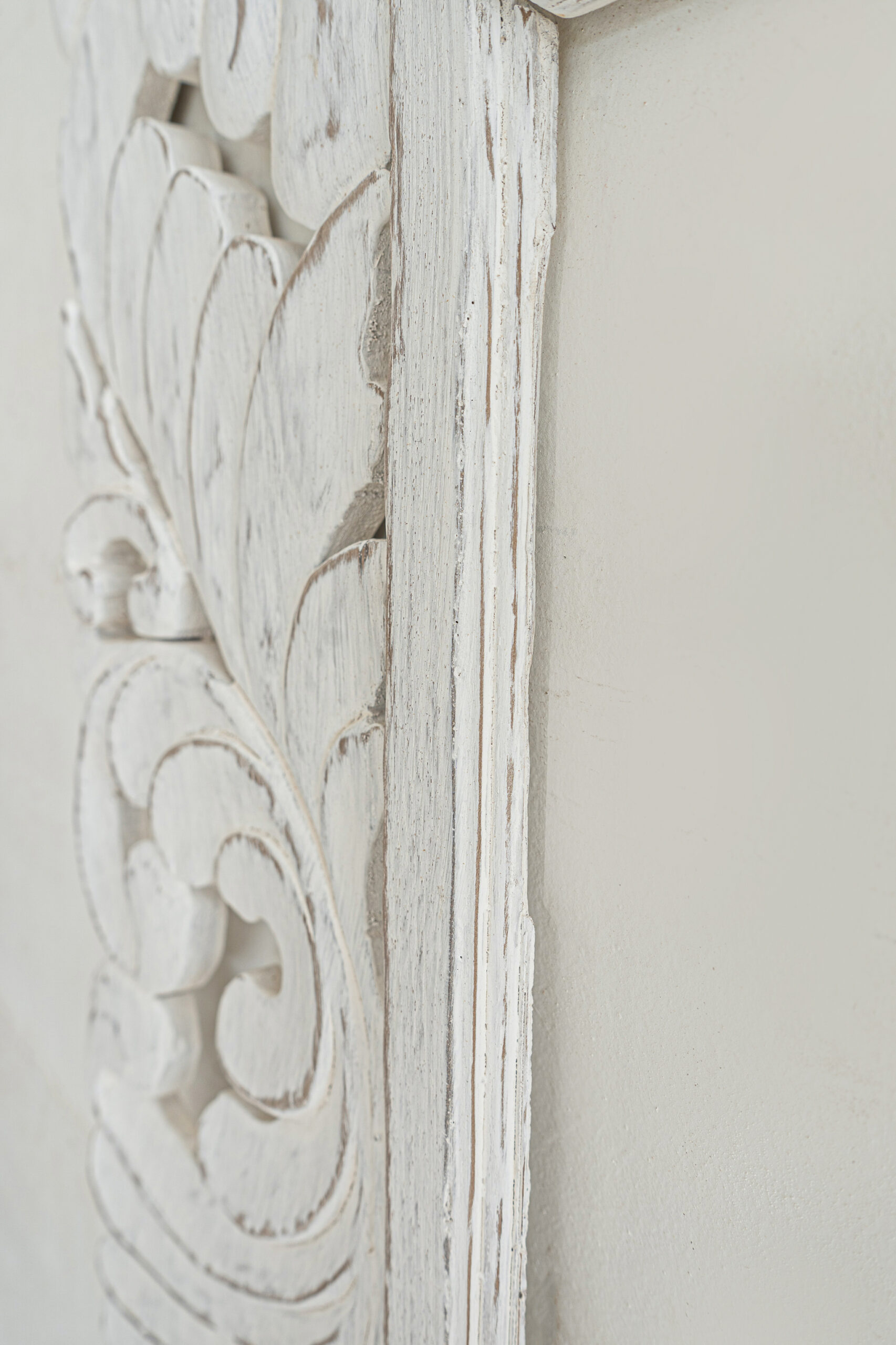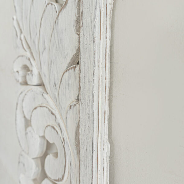 • Reclaimed Teak wood • Consists of 4 panels, mirror & backboard not included • Hand-carved — expect natural variations in pattern, color tone, wood grain, panel alignment, and up to ±1″ in width/height. Thickness may vary slightly due to carving. • Panel alignment may vary slightly due to handmade nature • Easy installation — metal hangers, screws, wall plugs, and instructions included • Optional wooden French cleat system available (additional cost) • Indoor use recommended; outdoor use possible only under covered areas (avoid direct sun/rain). Apply a clear outdoor wood sealant if placing outside. • Wipe with a dry cloth |