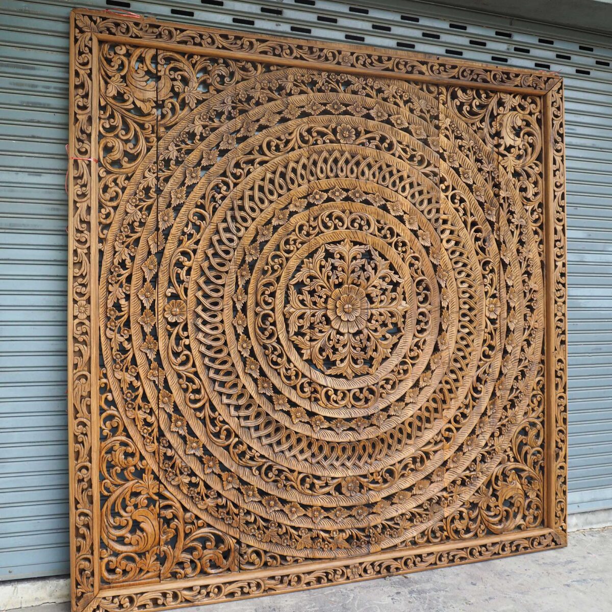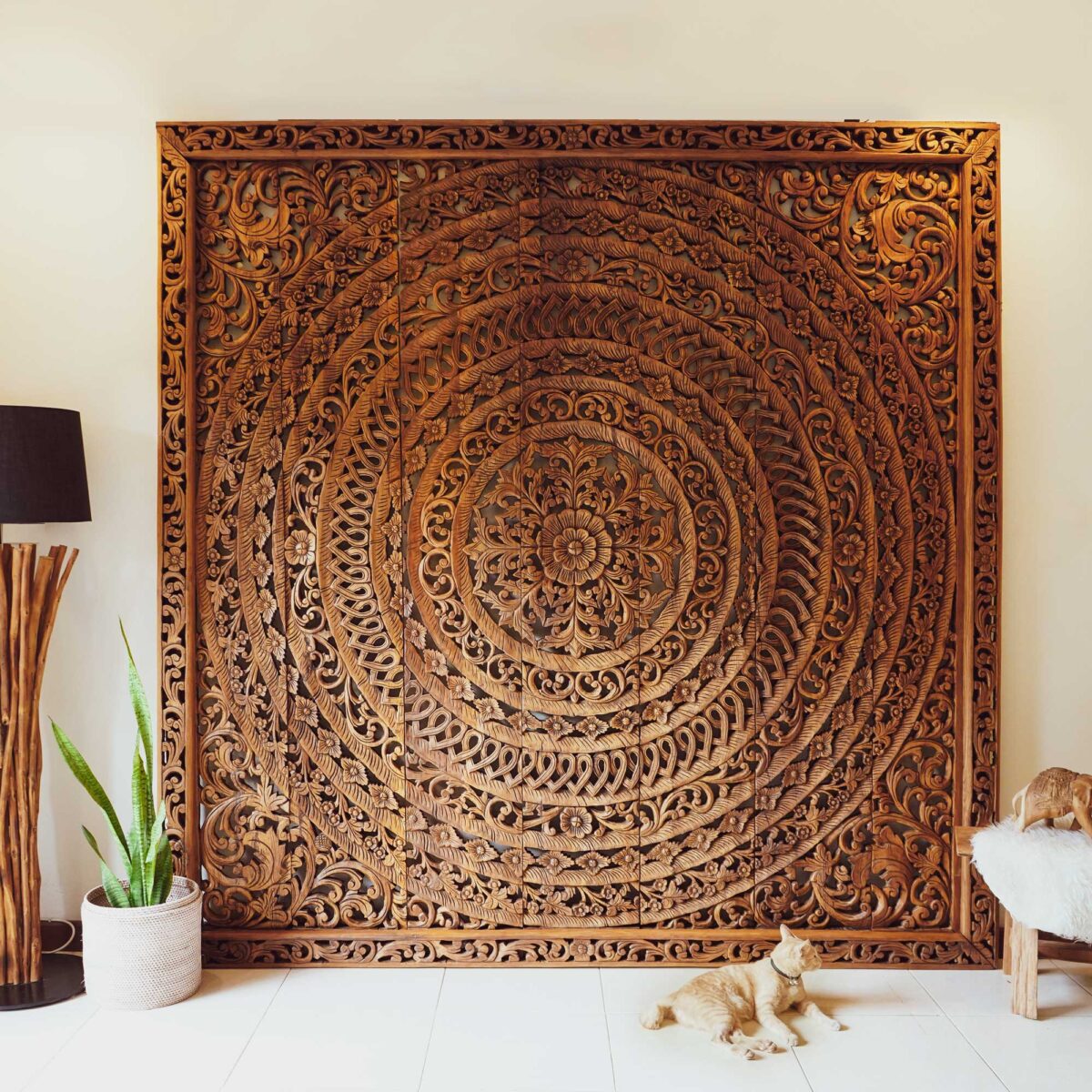 Large handmade relief carving tropical home decor. Delicate handmade wall art panel with the decent exotic look from Thailand.