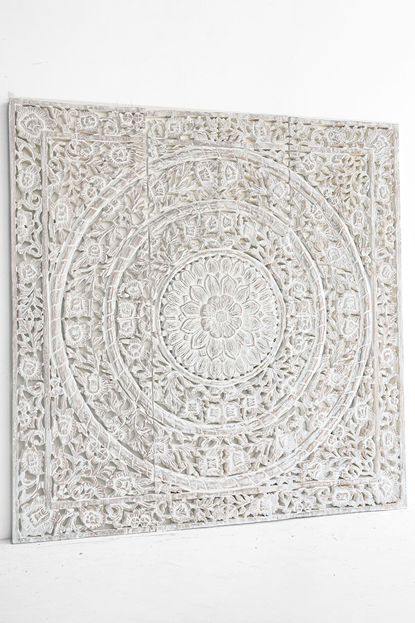 Wooden wall art plaque. Hand carved of tropical reclaimed teak wood from Thailand.