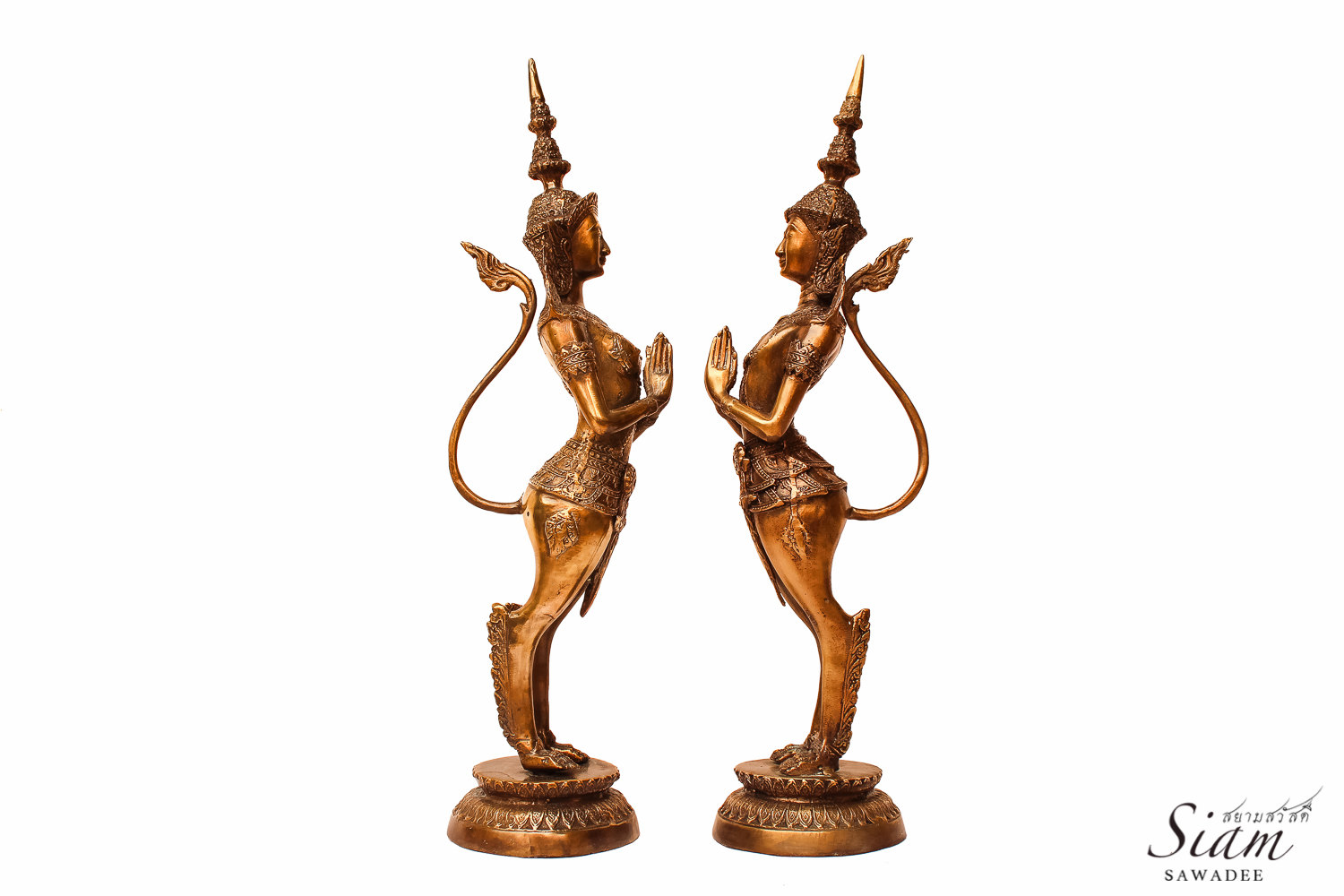 Pair of exquisite bronze Statues of the Mythological creatures ‘Kinnari’ (Male & Female) ‘The lovers.’ (Poem Below) From Thailand. Perfect wedding or romantic gift.