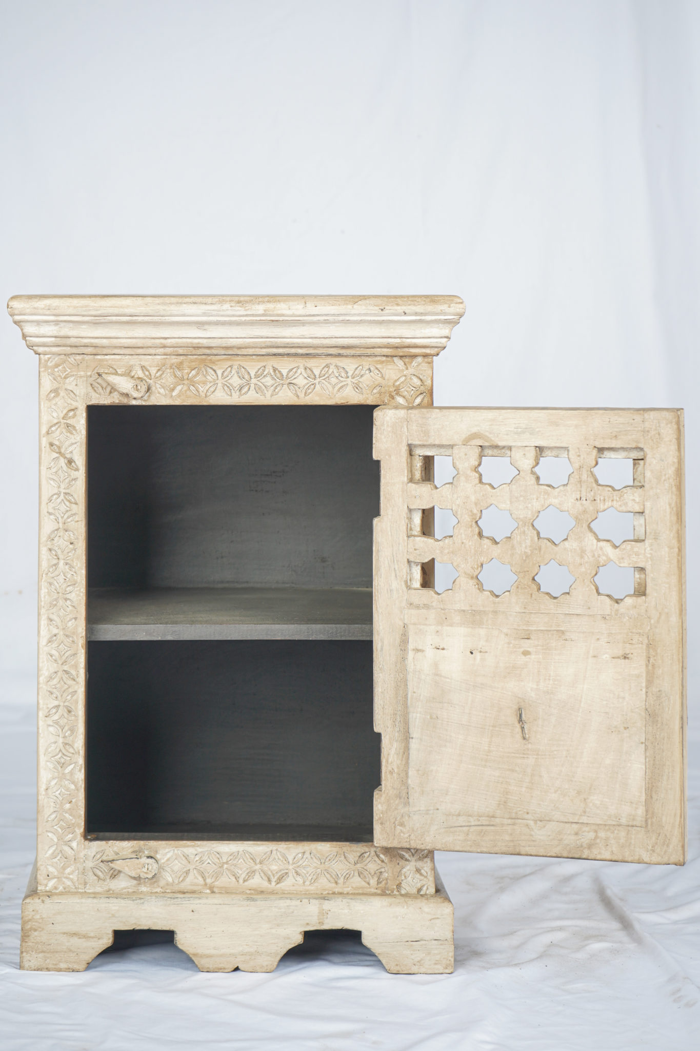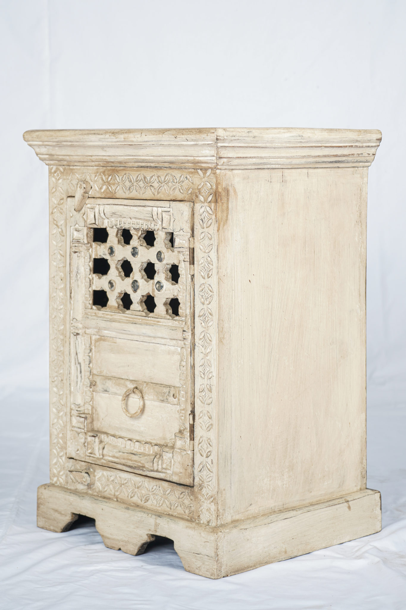 Unique wooden bedroom table carved in Mango wood. Bring a sense of authenticity to your home with this hand-painted furniture from India.